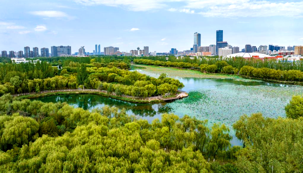 銀川老城秋日圖景 紅嘴鷗如期赴約